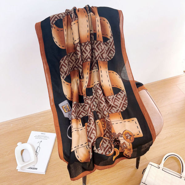 ছবিতে বিভিন্ন নকশা এবং রঙের চারটি স্কার্ফ বা স্টোল দেখানো হয়েছে। এগুলি সিল্ক বা অনুরূপ মসৃণ কাপড় দিয়ে তৈরি এবং বিভিন্ন ফ্যাশন স্টাইলের জন্য উপযুক্ত। প্রতিটি স্কার্ফের নিজস্ব স্বতন্ত্র ডিজাইন রয়েছে, যার মধ্যে কিছুতে জটিল প্যাটার্ন এবং কিছুতে স্ট্রাইপ বা জ্যামিতিক নকশা দেখা যাচ্ছে। এগুলি শীতকালে উষ্ণতা প্রদান বা ফ্যাশন অনুষঙ্গ হিসেবে ব্যবহার করা যেতে পারে
